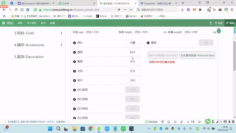 至少5个可控量体数据自定义:确保牛仔裤贴合身材曲线,成本符合版型的情况下,解决传统牛仔裤不合身的问题。